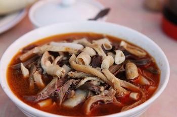 羊杂碎是乌兰察布传统民间饮食,尤以四子王旗为代表。成分为:羊头肉、羊心、肝、肺、肚、肠,切碎后,放入各种调料及大量