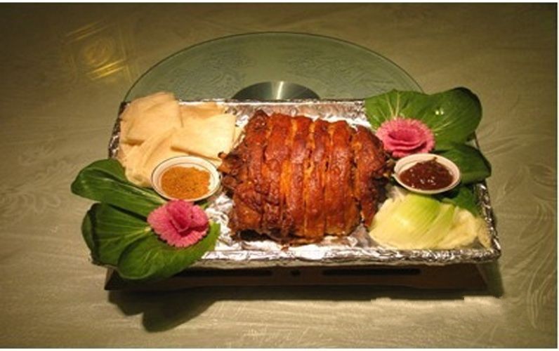 烤羊脊两吃,原料选用四子王旗羔羊,用独家“秘方”烤制而成。其色泽透亮,肉质干香,味道醇鲜,真是“色、香、味”俱