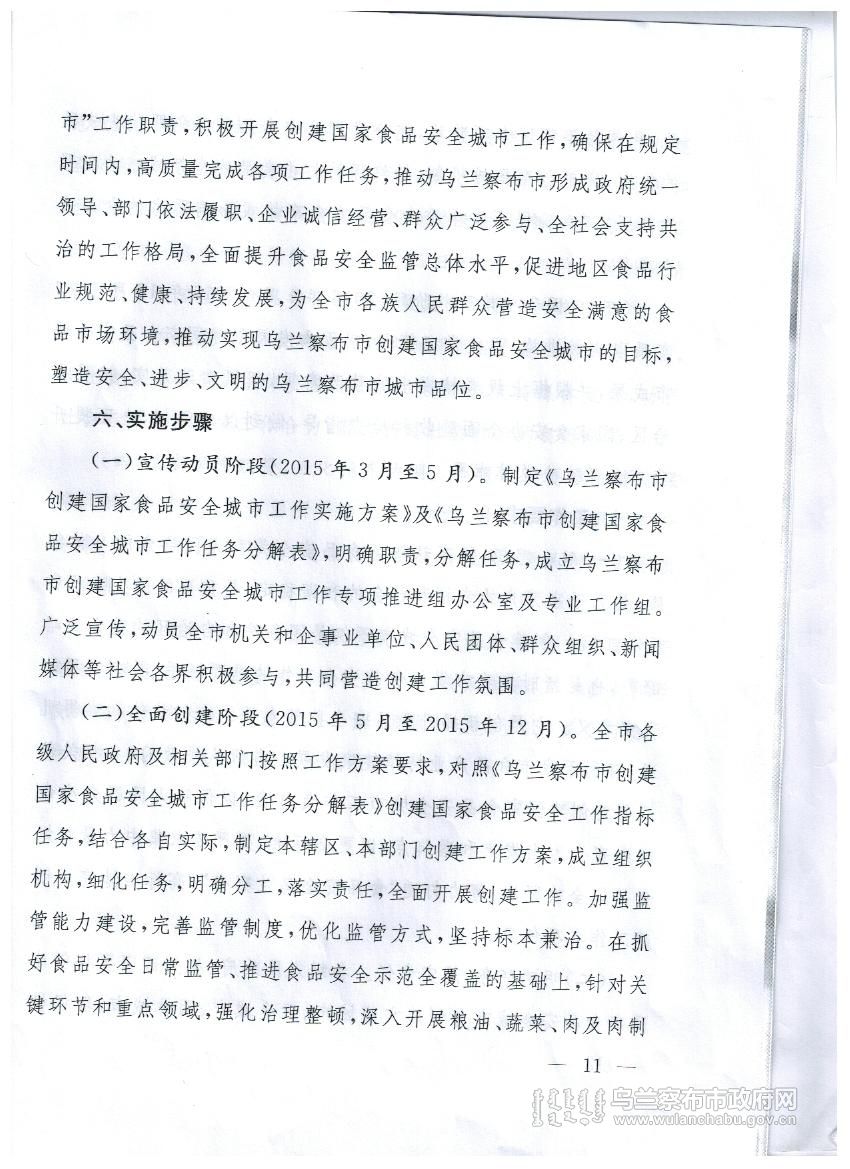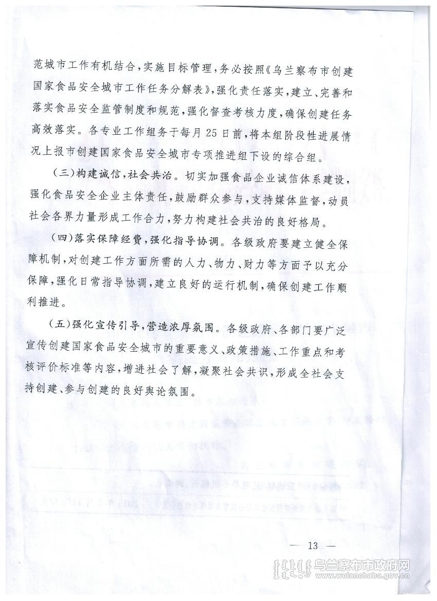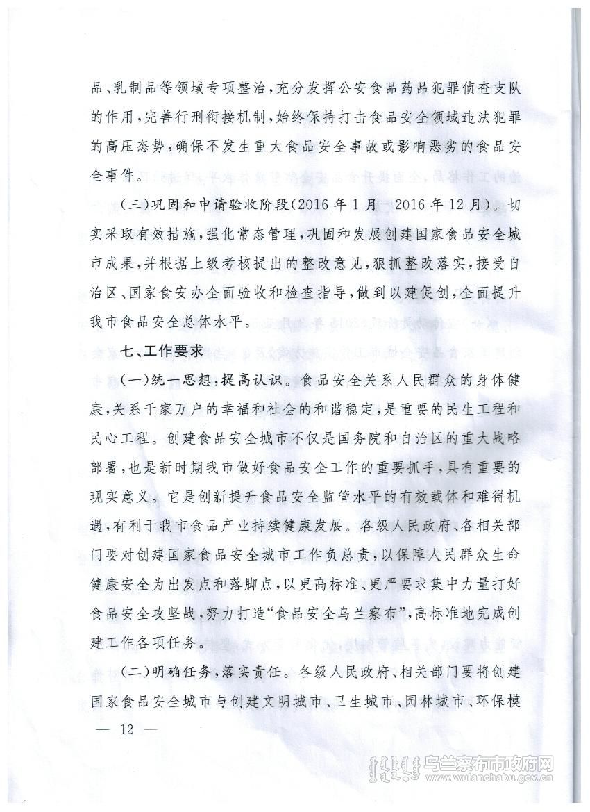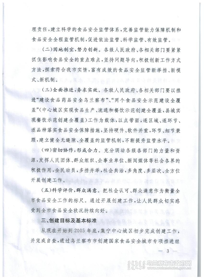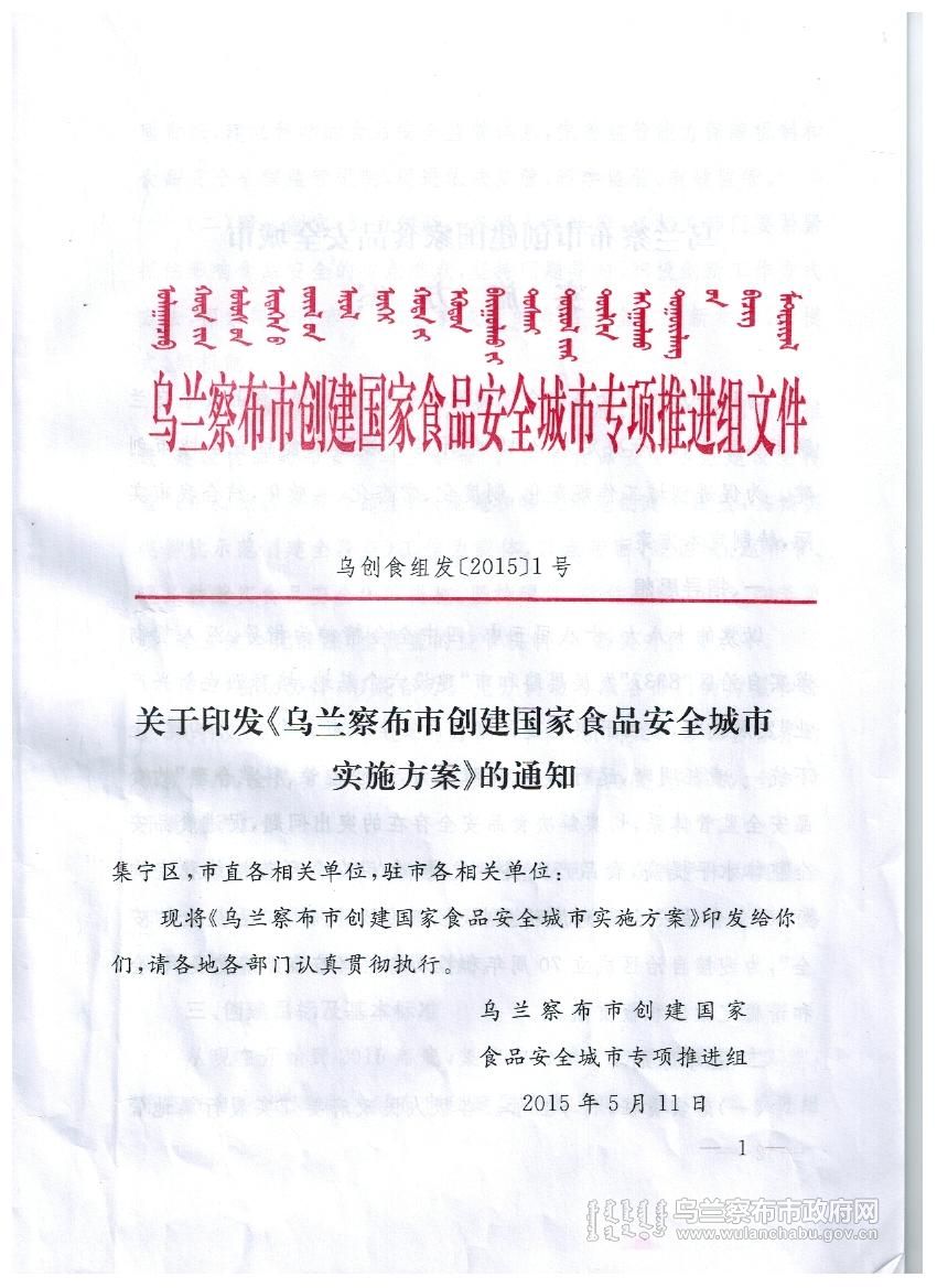 乌兰察布市创建国家食品安全城市实施方案