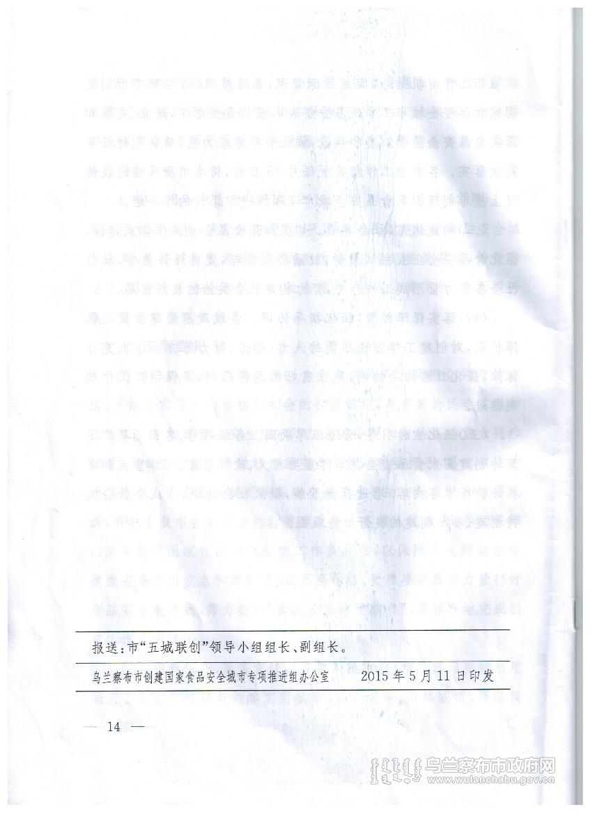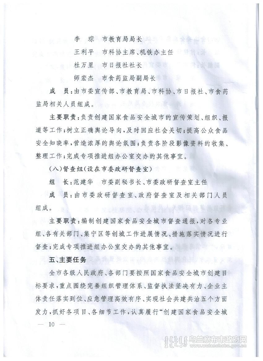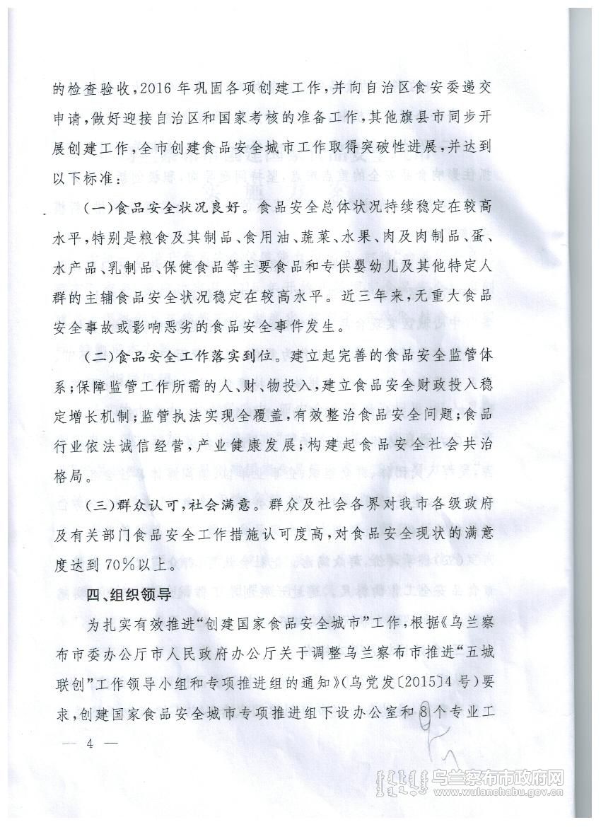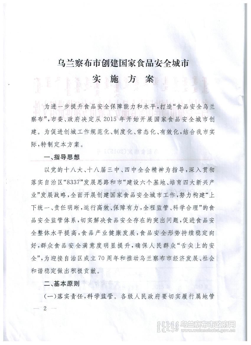 乌兰察布市创建国家食品安全城市实施方案