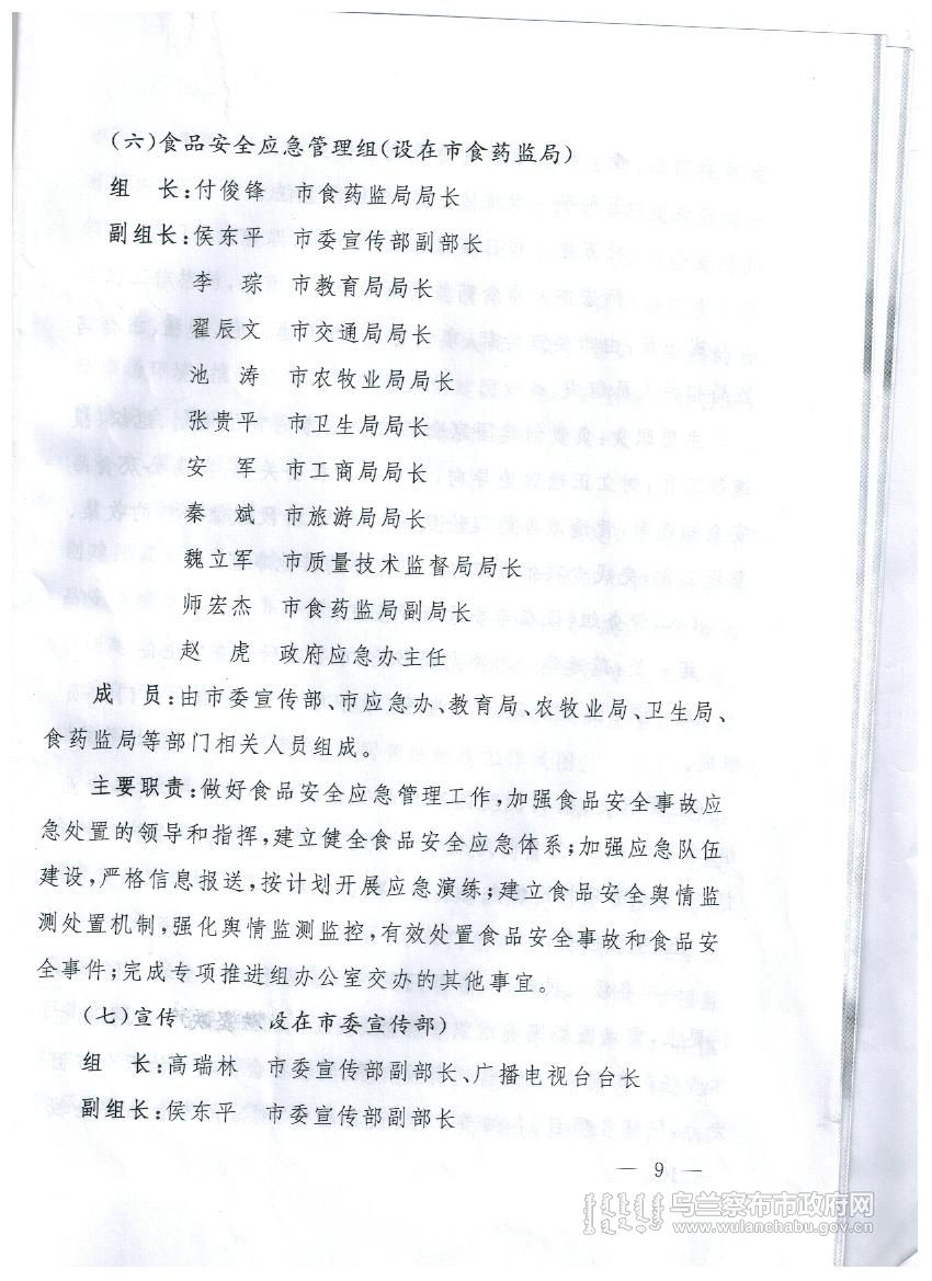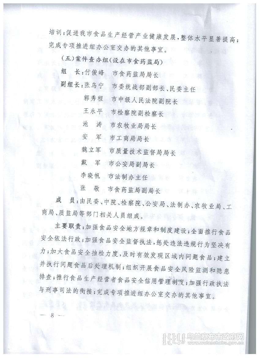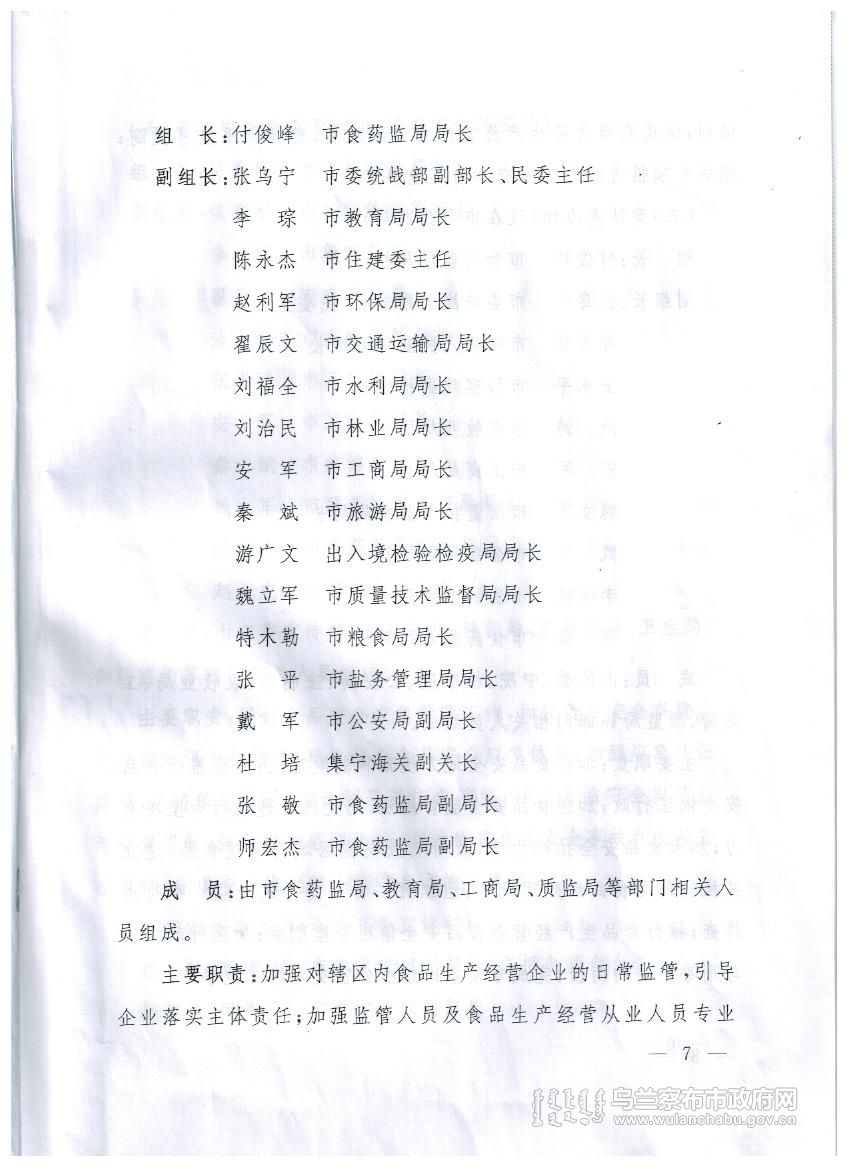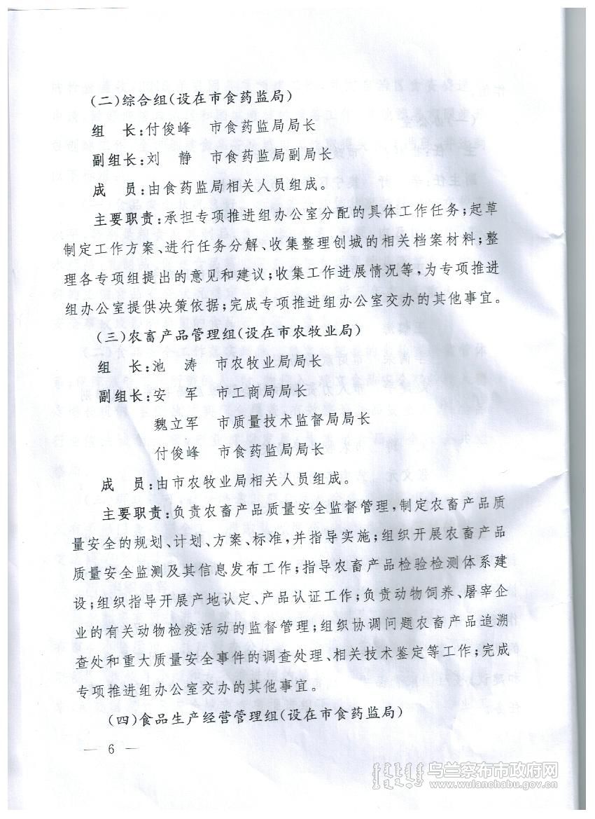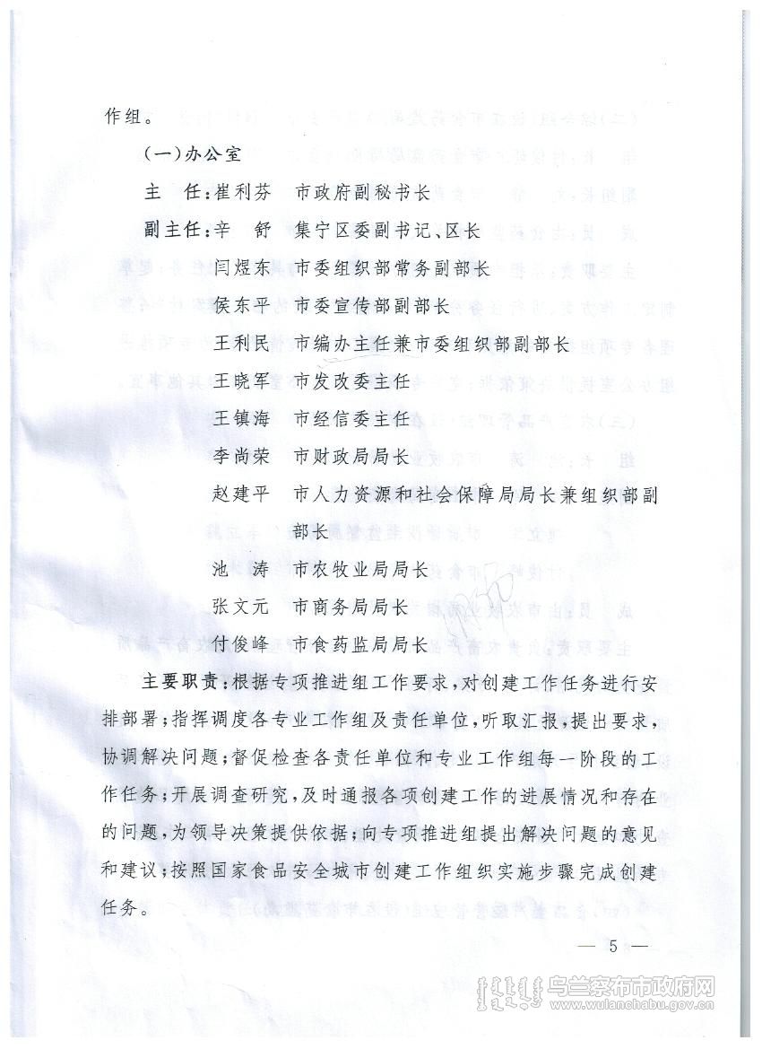 乌兰察布市创建国家食品安全城市实施方案